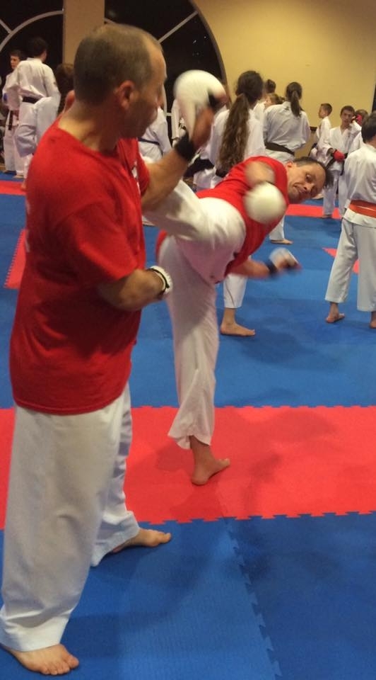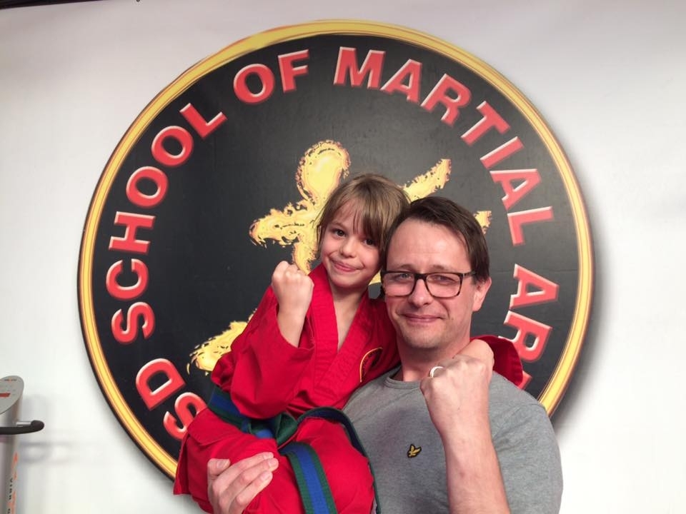 Then sometime in 2013 (really must get myself a new memory palace) came the decision to take my then 6 year old daughter to a Karate class so that she could start to learn how to look after herself (there will be boys on the radar at some point in the future) . Luckily for us SD School of Martial Arts was just down the road so we rocked up one Sunday morning to find a large Dojo full of people of all shapes and sizes, dressed in red pyjamas, running around and making a lot of noise. I felt guilty just pushing her out on her own so I slipped off my shoes and socks and had a run around with her. Probably only took about 3 classes and I was hooked. I also couldn’t walk or lift my arms but figured it was doing me good.